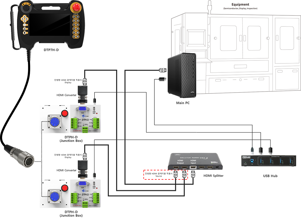 HDMI Splitter 적용 배선도 (메인 PC의 화면을 다수의 모니터 또는 펜던트에 복제)