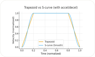 通过S曲线平滑加速/减速区间,减轻冲击与残余振动
